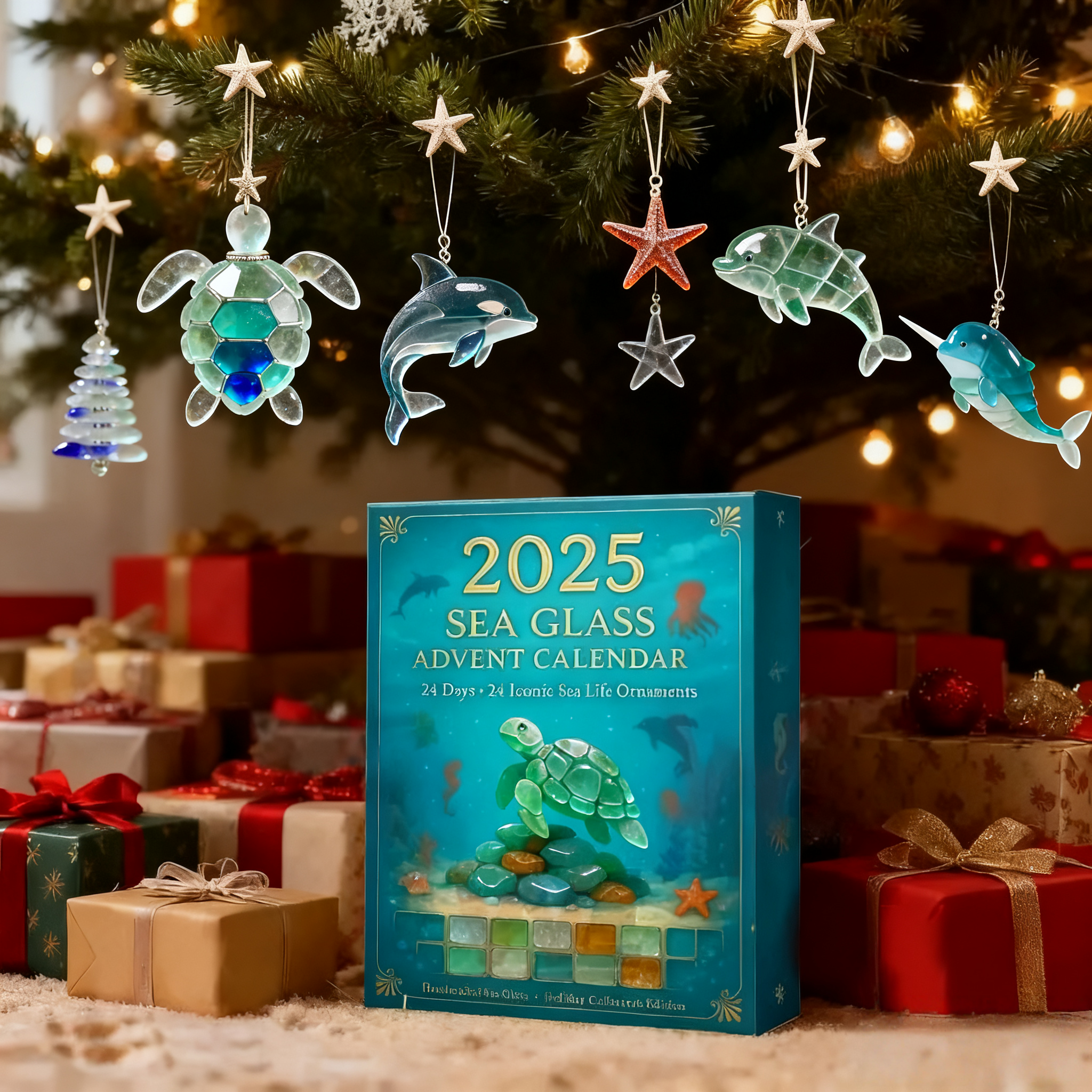 - Package Includes: 1 × 2025 Sea Glass Marine Life Advent Calendar with 24 beautiful sea life ornaments, each featuring sea glass-inspired finishes.
